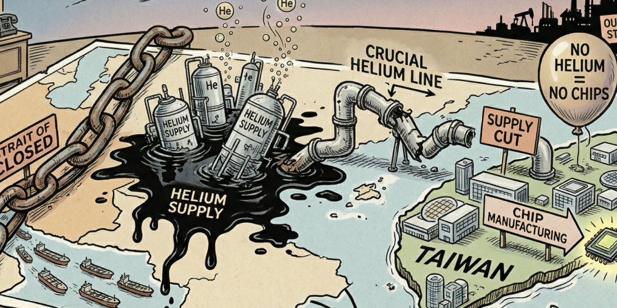 Every barrel of oil that cannot pass through the Strait of Hormuz gets counted. Every tanker stranded in the Persian Gulf, every force majeure declaration from Kuwait or Qatar, every drone intercepted over Shaybah — these make headlines and move markets in real time. But there is a second shock running underneath all of it, slower, less visible, and in some ways more structurally dangerous. It is the helium shock.